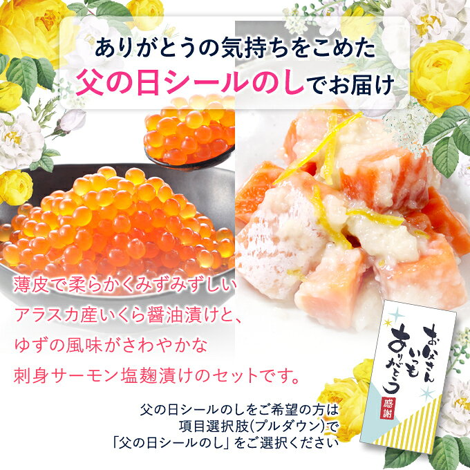 父の日 ギフト いくら アラスカ産+サーモン塩麹漬け 送料無料 化粧箱入 イクラ醤油漬け サーモン塩辛 プレゼント ギフト お取り寄せグルメ