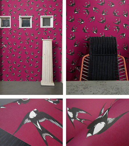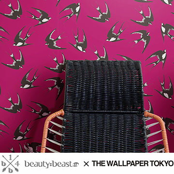 beautybeast 壁紙 THE WALLPAPER TOKYO アンティーク ナチュラル ツバメ スワローズ レッド ヴィンテージ フリース壁紙 フリースデジタルプリント壁紙 デジタルプリント壁紙 貼って剥がせる 賃貸OK 日本製 パネル(46cmx10.32m)
